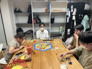カタン部の良いところは、遊びながら自然にコミュニケーションが増えることです!普段は話さないようなことも、ゲームをキッカケに笑い合えます。勝ち負け以上に一緒に楽しむ時間が何よりも魅力に感じています。